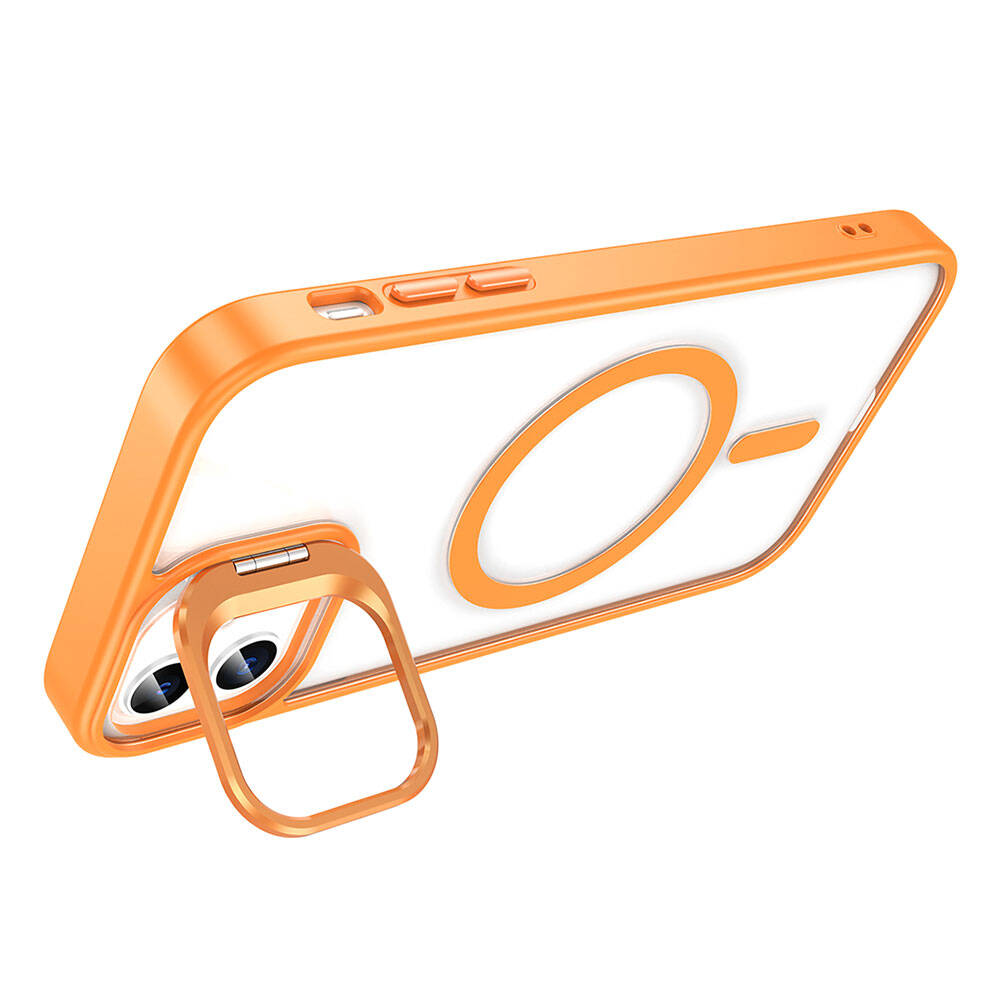Apple iPhone 11 Kılıf Magsafe Şarj Özellikli Standlı Zore Magsafe Klon Lensli Kapak Turuncu