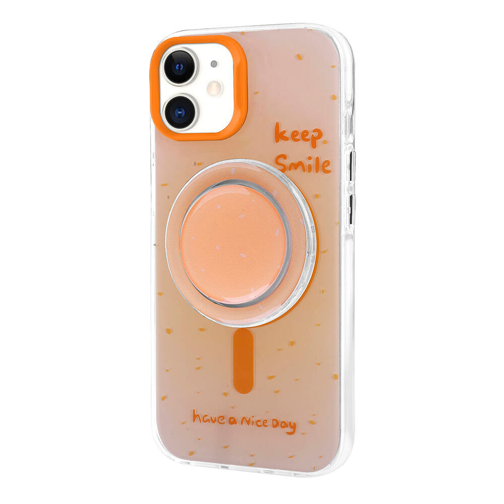 Apple iPhone 11 Kılıf Magsafe Şarj Özellikli Tak-Çıkar Pop Soketli Zore Tiktok Kapak Turuncu