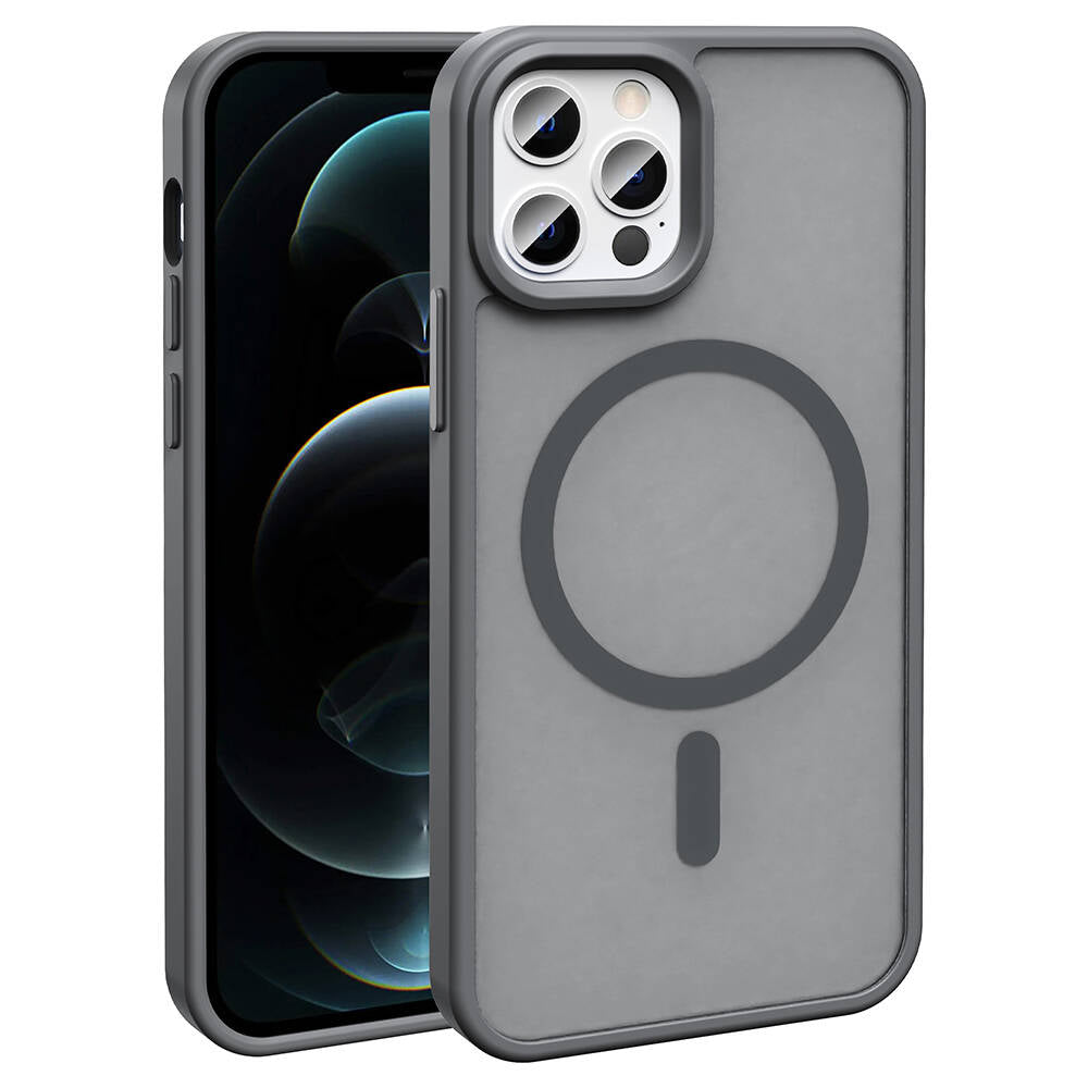 Apple iPhone 12 Pro Kılıf Magsafe Şarj Özellikli Mat Arka Yüzey Zore Sio Kapak Gri