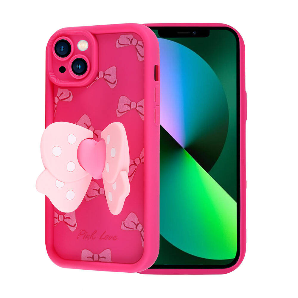 Apple iPhone 13 Kılıf Kamera Korumalı Figür Tasarımlı Zore Kapya Kapak Pembe Açık