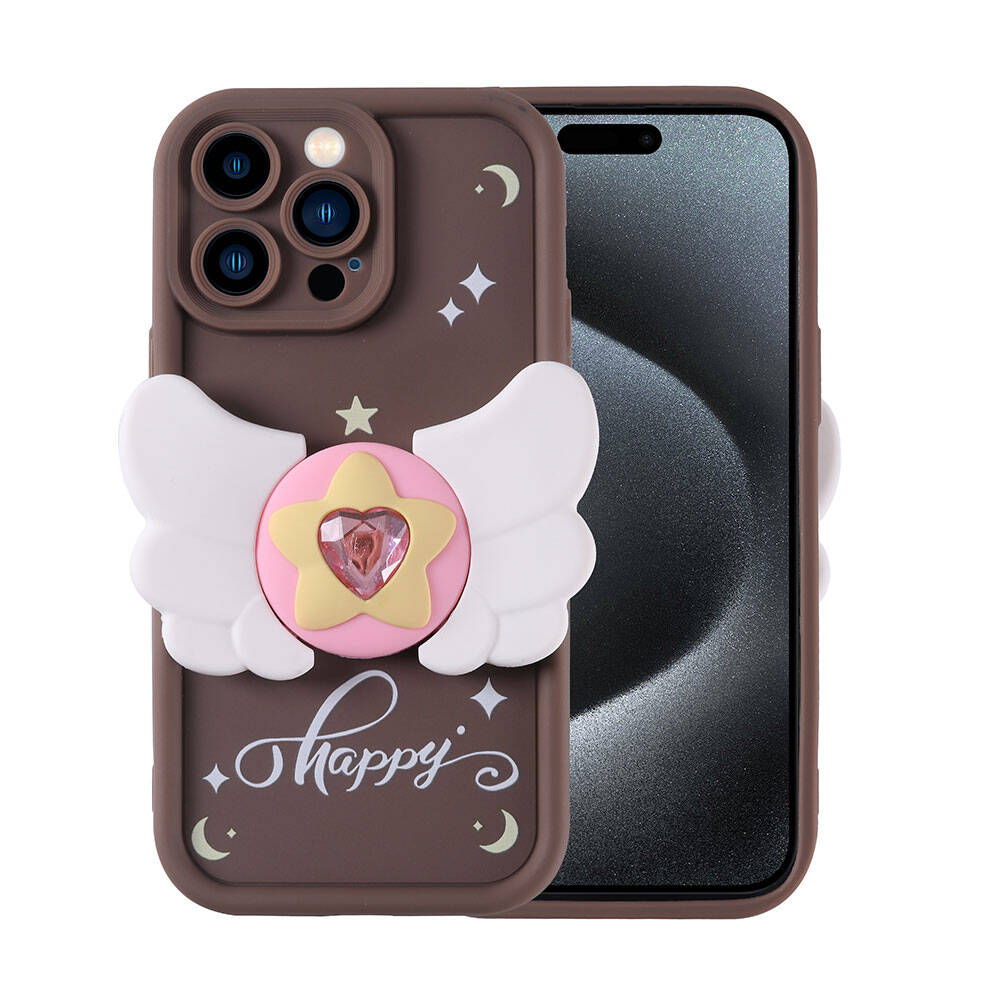 Apple iPhone 15 Pro Max Kılıf Kamera Korumalı Figür Tasarımlı Zore Kapya Kapak Koyu Kahve