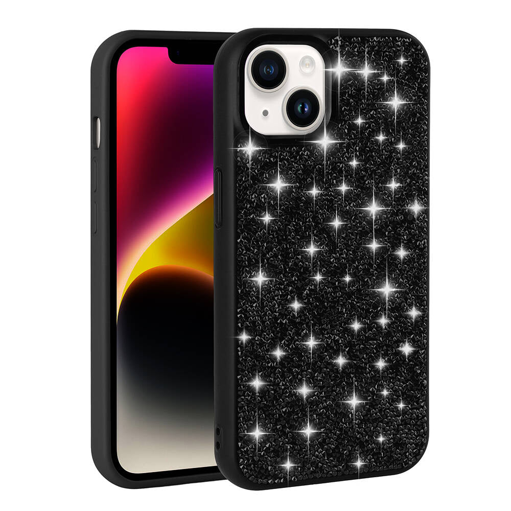 Apple iPhone 13 Kılıf Parlak Taşlı Tasarım Zore Pırlanta Kapak Siyah