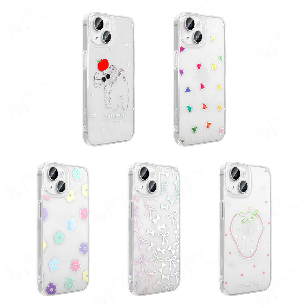 Apple iPhone 14 Kılıf Şeffaf Figürlü Zore Folk Sert Kapak Çilek