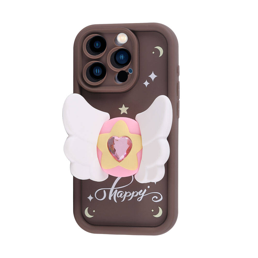 Apple iPhone 14 Pro Kılıf Kamera Korumalı Figür Tasarımlı Zore Kapya Kapak Koyu Kahve