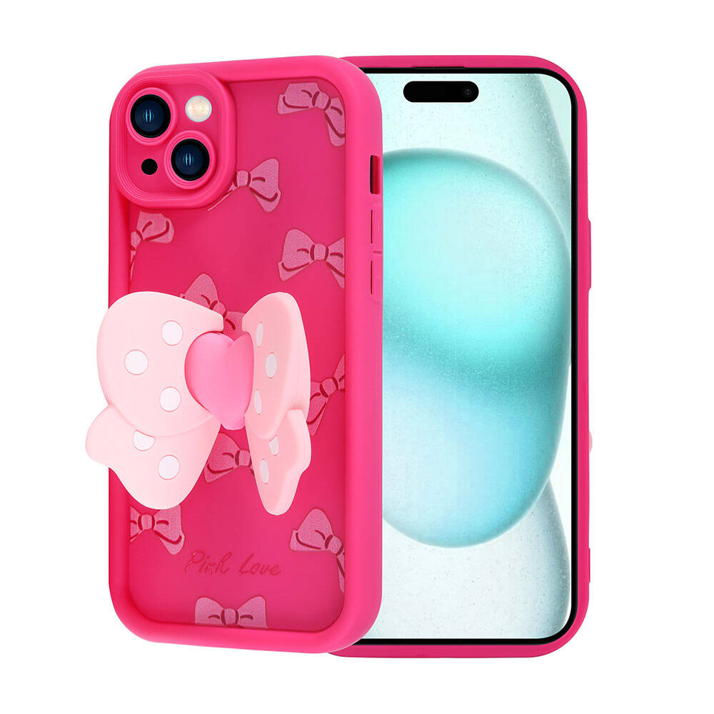 Apple iPhone 15 Plus Kılıf Kamera Korumalı Figür Tasarımlı Zore Kapya Kapak Pembe Koyu