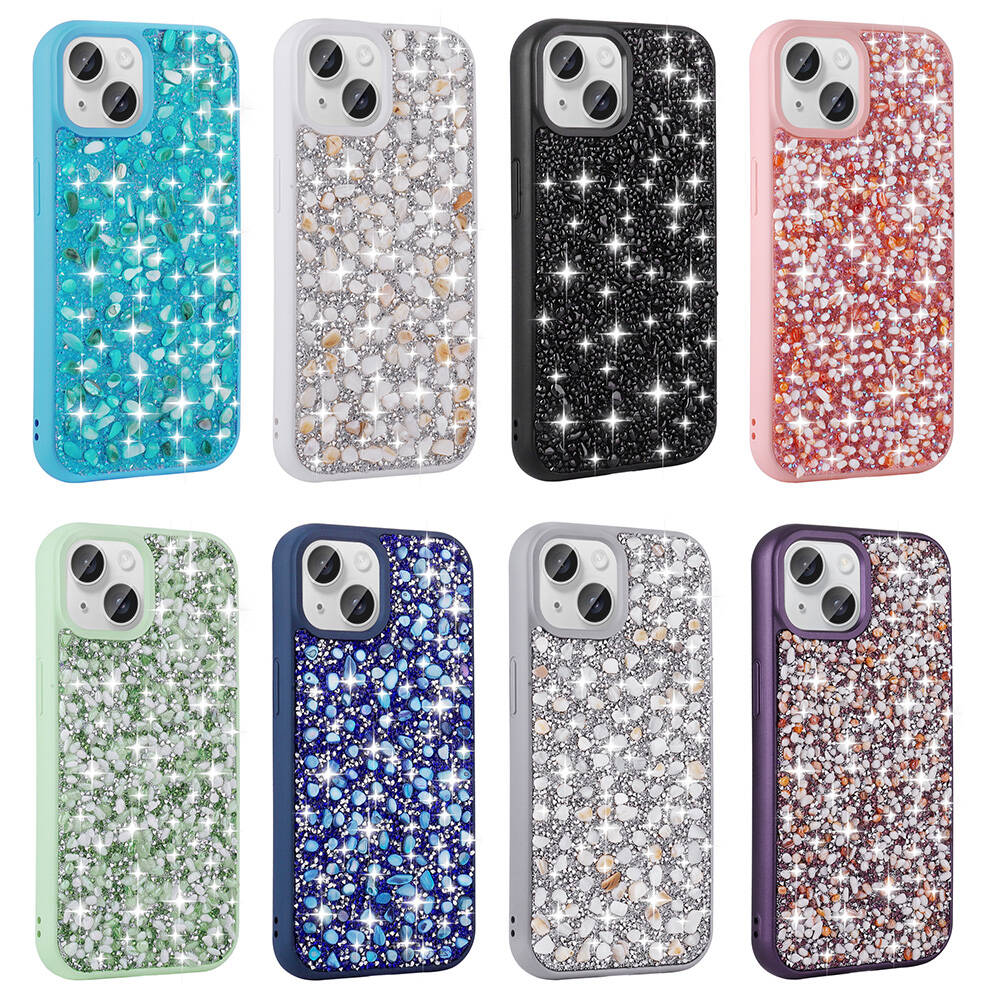 Apple iPhone 15 Plus Kılıf Parlak Taşlı Tasarım Zore Linea Kapak Beyaz