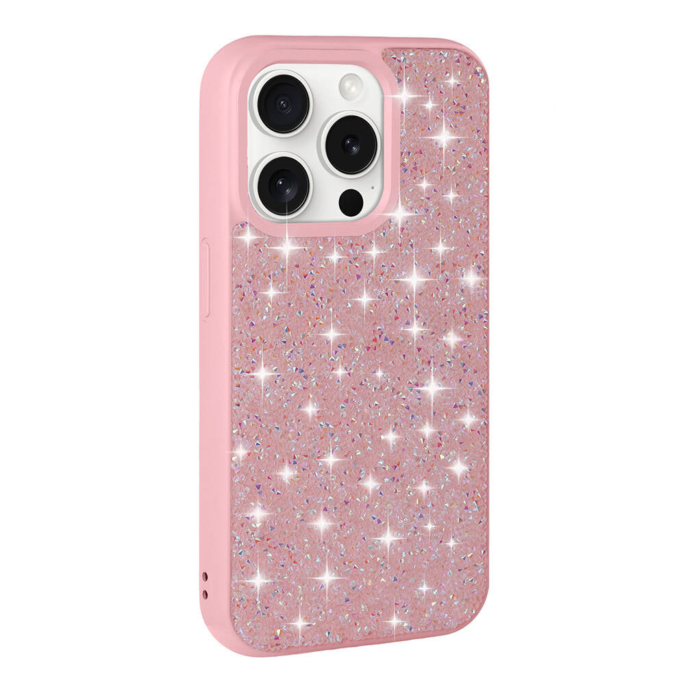 Apple iPhone 15 Pro Kılıf Parlak Taşlı Tasarım Zore Pırlanta Kapak Pembe