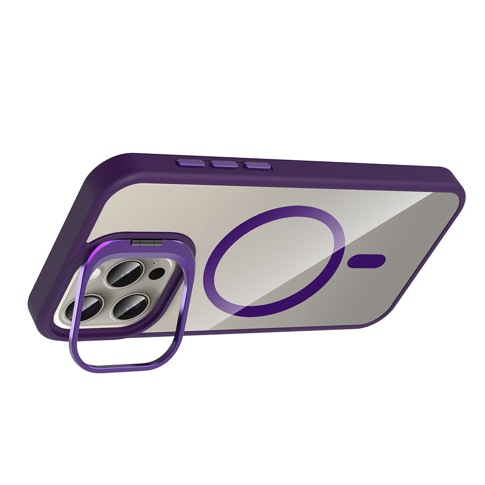 iPhone 15 Pro Kılıf Standlı ve Kamera Lens Hediyeli M-Safe Şarj Özellikli Zore Etro Kapak