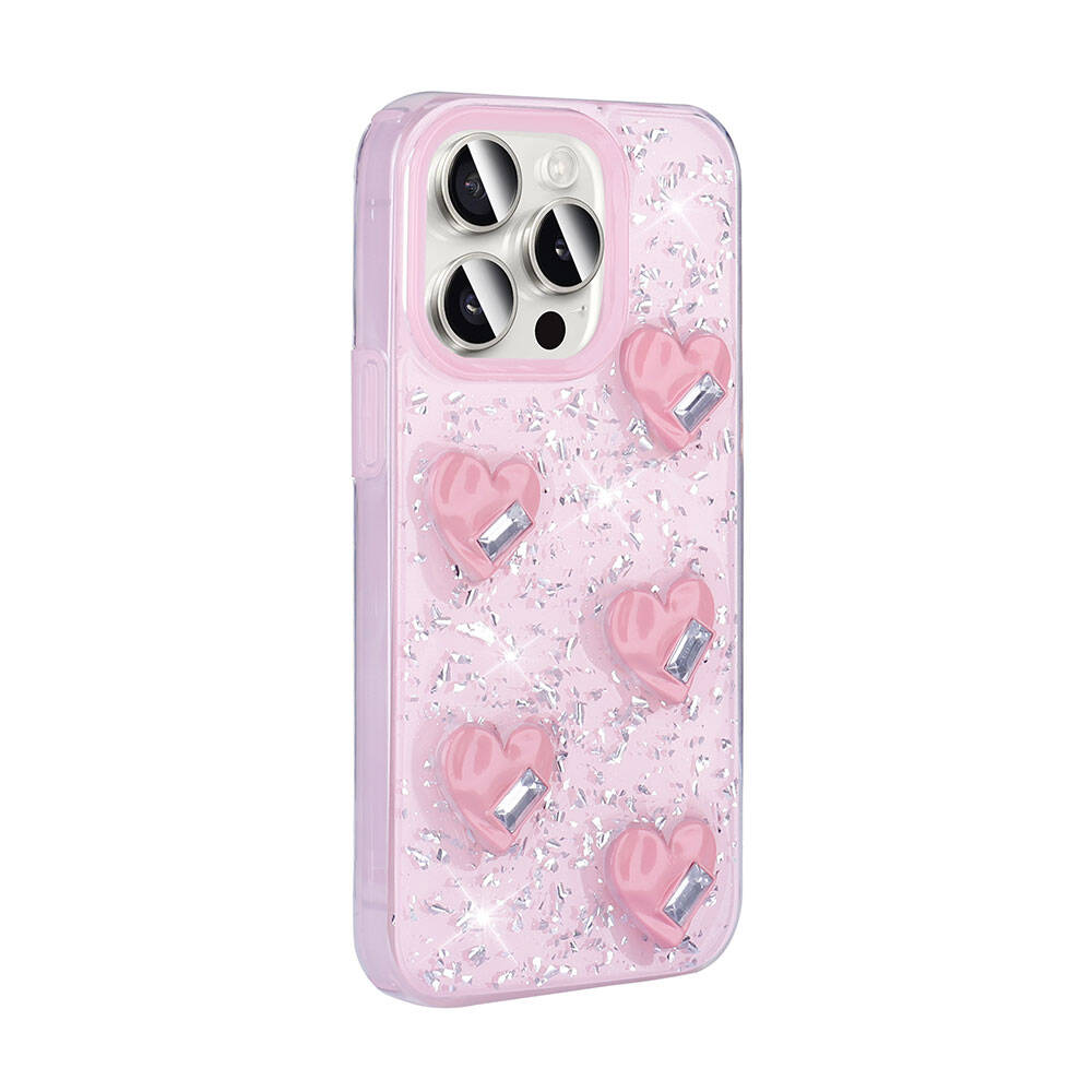 Apple iPhone 15 Pro Max Kılıf Airbagli Simli Arka Yüzey Zore Işıltı Silikon Kapak Pembe