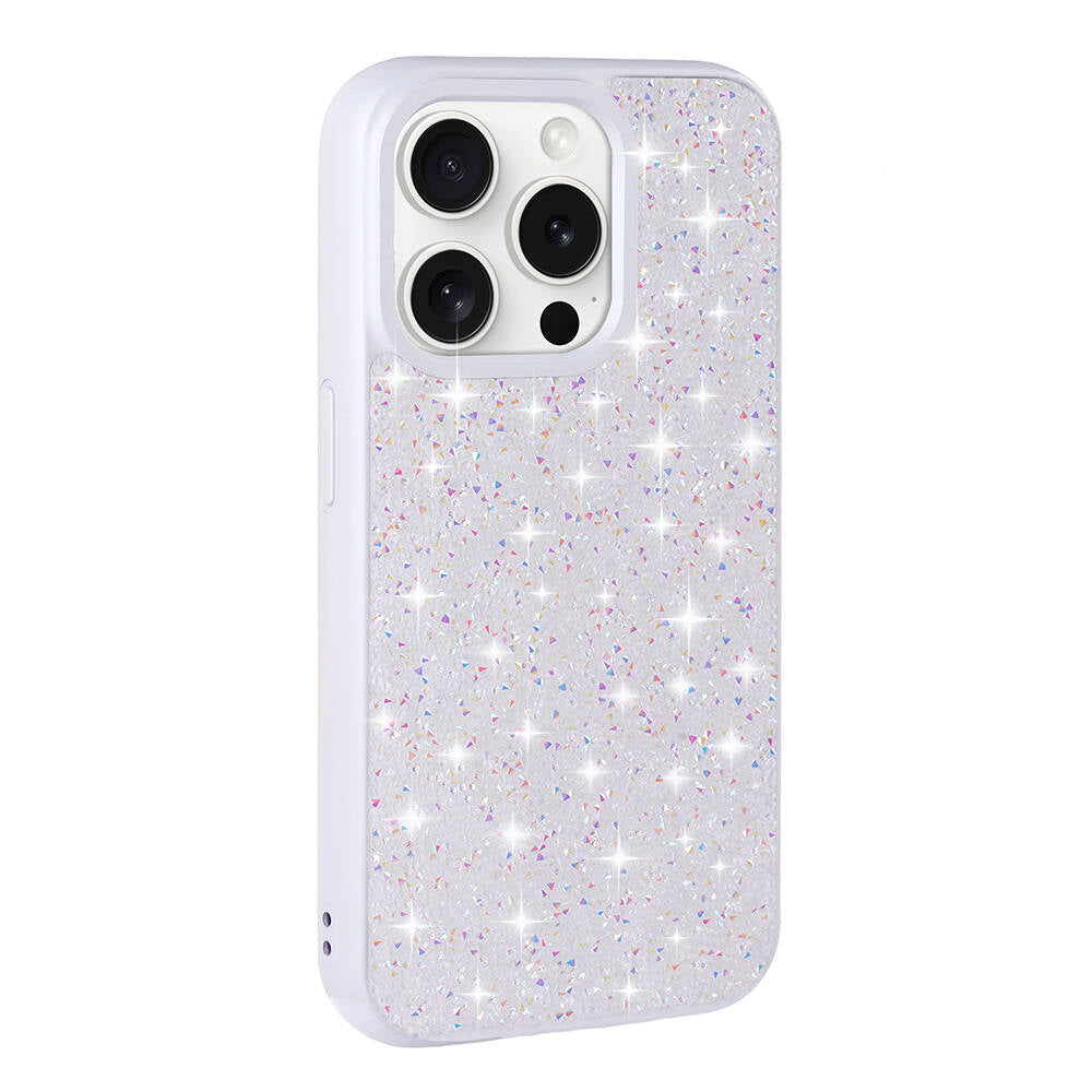 Apple iPhone 15 Pro Max Kılıf Parlak Taşlı Tasarım Zore Pırlanta Kapak Beyaz