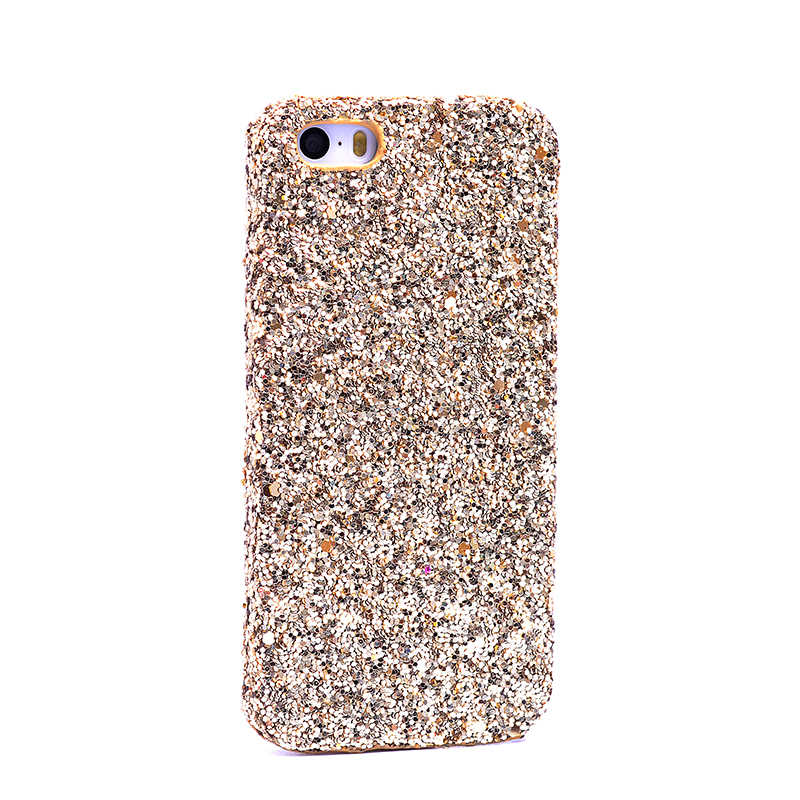 Apple iPhone 5 Kılıf Zore Caselogy Simli Kapak Gold