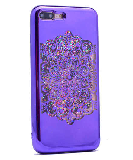 Apple iPhone 6 Kılıf Zore Lazer Çiçekli Sıvılı Silikon Mor