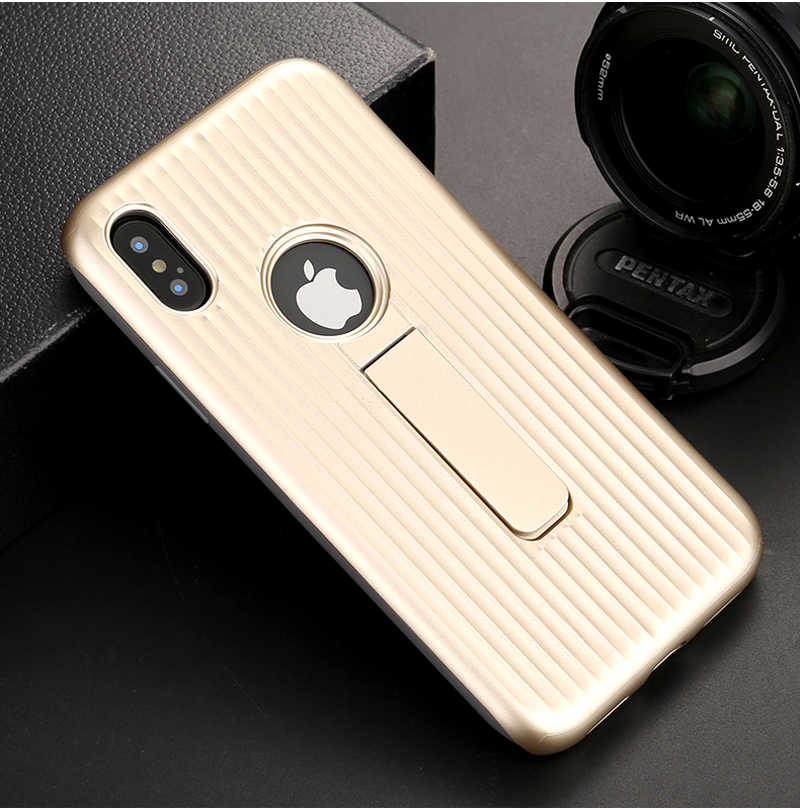 Apple iPhone X Kılıf Zore Wave Standlı Mıknatıslı Kapak Gold