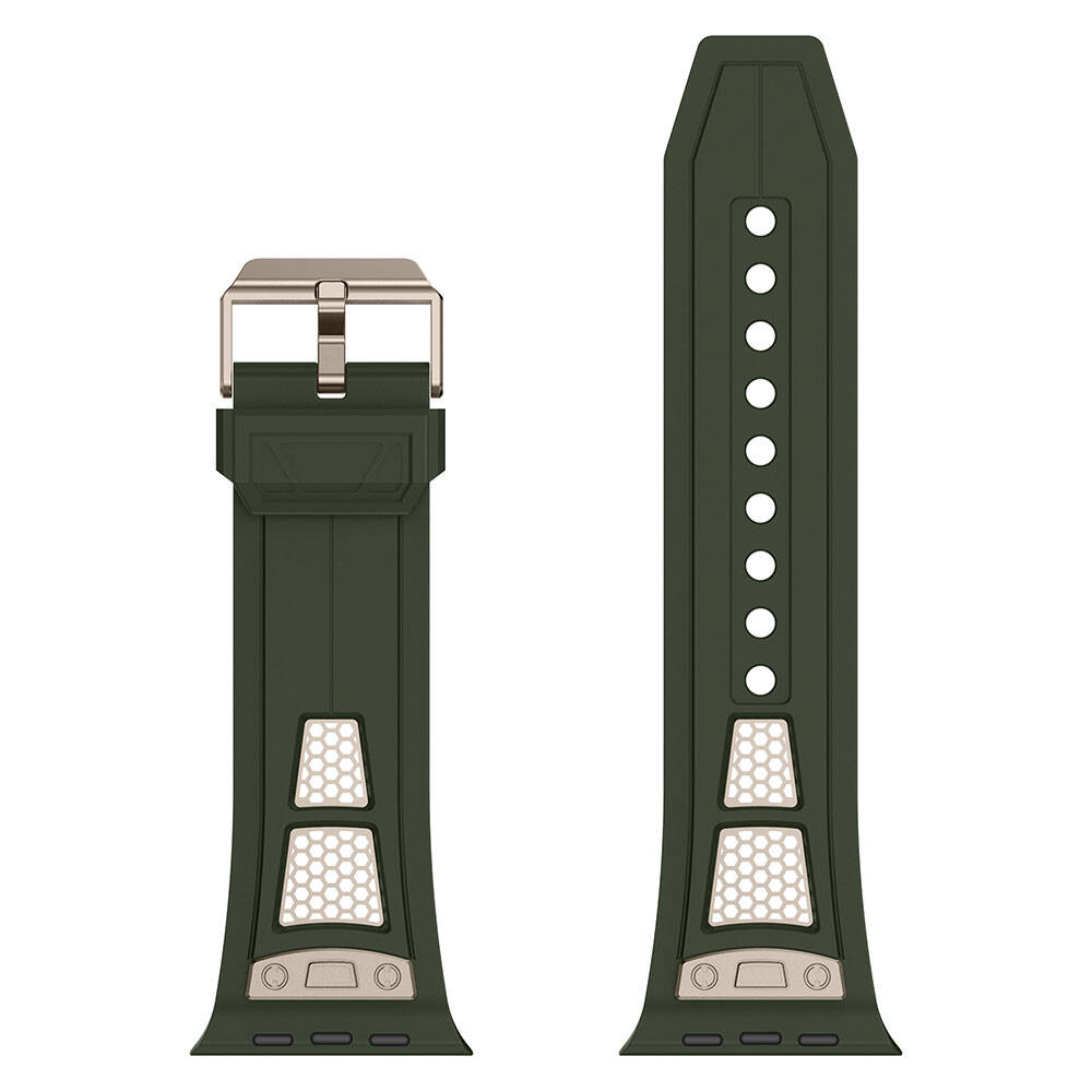 Apple Watch 42mm Zore KRD-117 Hava Alabilen Delikli Metal Süslemeli Desenli Silikon Kordon Siyah