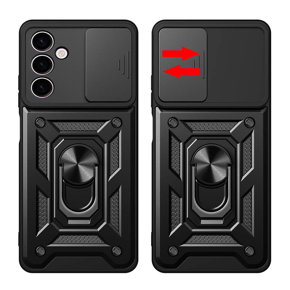 Galaxy A24 Kılıf Magnetik Standlı Kamera Korumalı Zore Sürgülü Vega Kapak Siyah