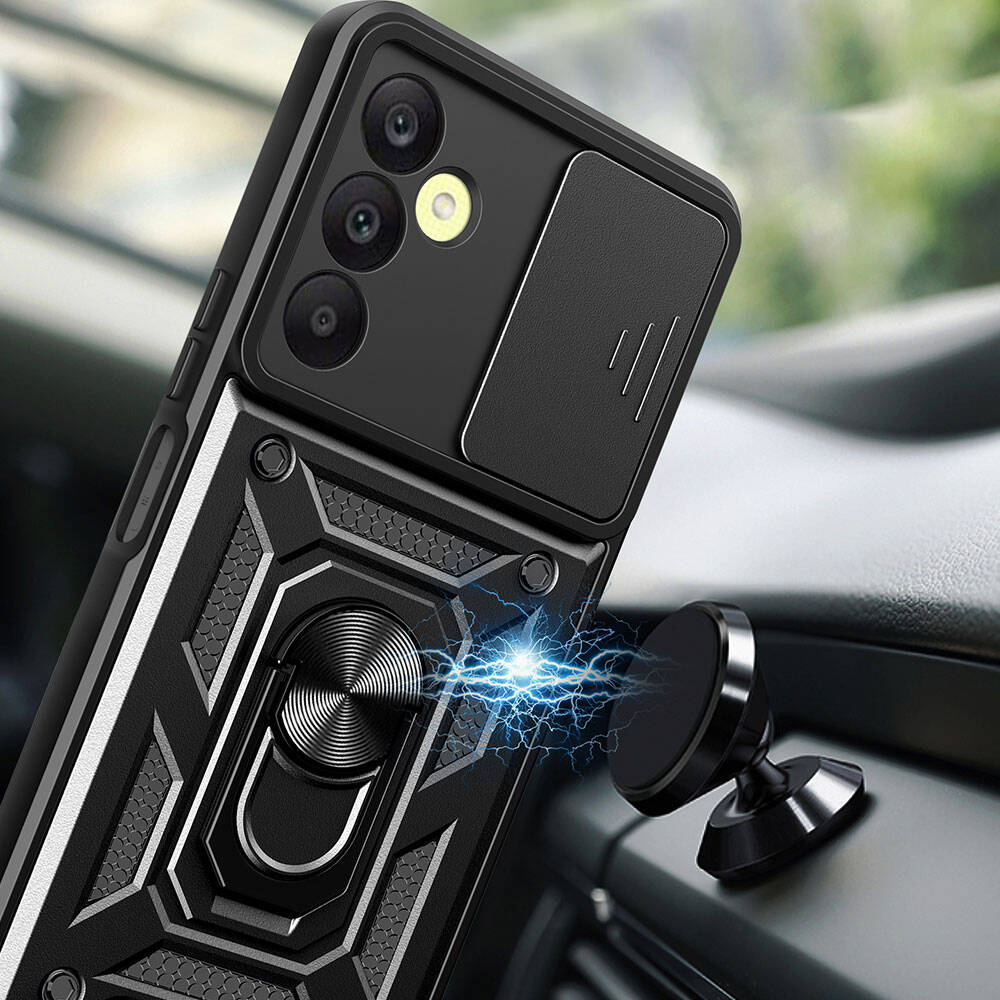 Galaxy A25 Kılıf Magnetik Standlı Kamera Korumalı Zore Sürgülü Vega Kapak Mavi