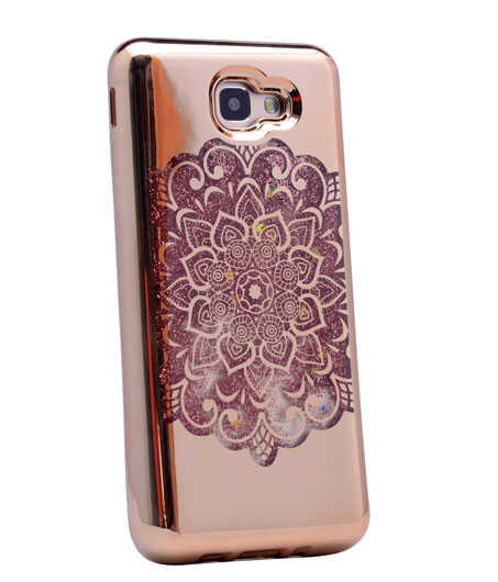 Galaxy A7 2016 Kılıf Zore Lazer Çiçekli Sıvılı Silikon Gold