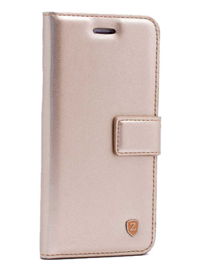 Galaxy J6 Kılıf Zore New Delüxe Kapaklı Standlı Kılıf Gold