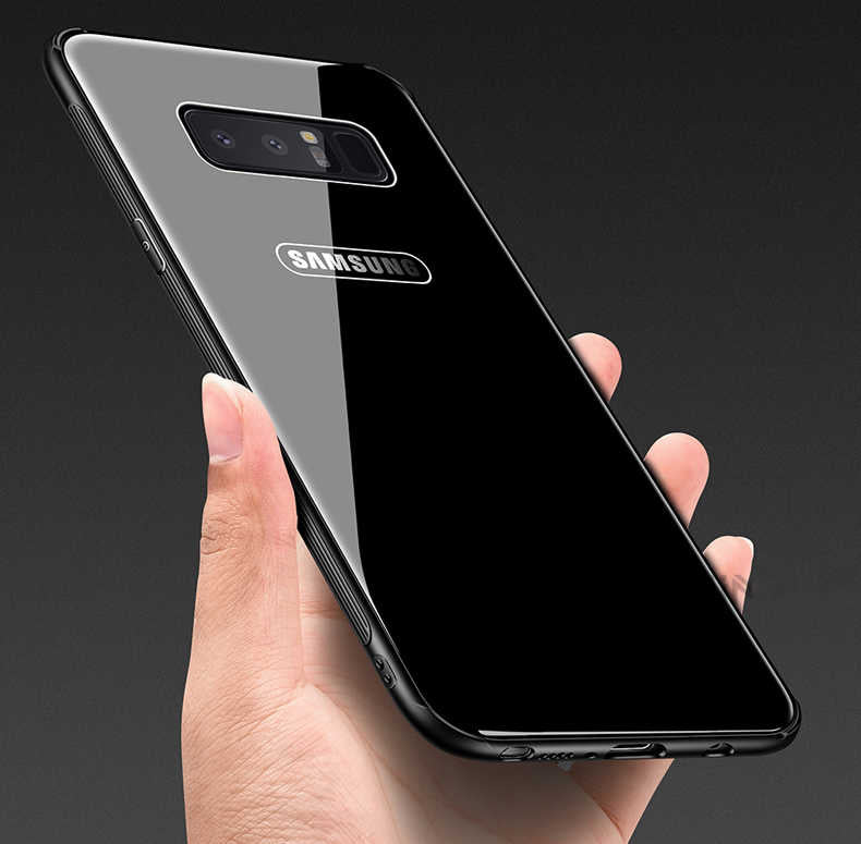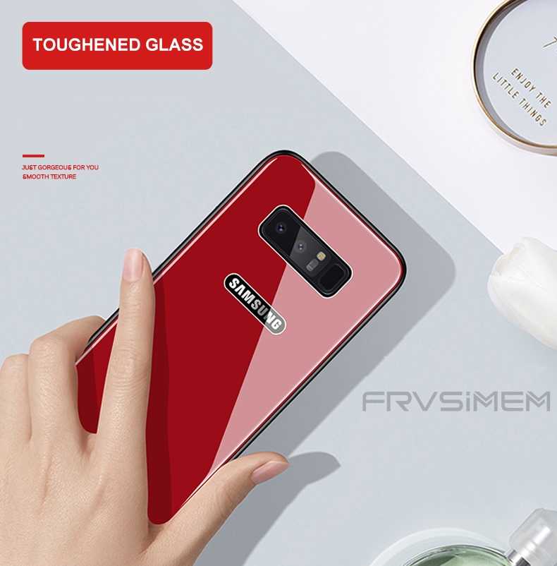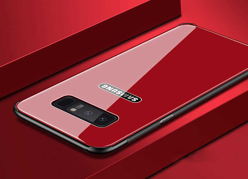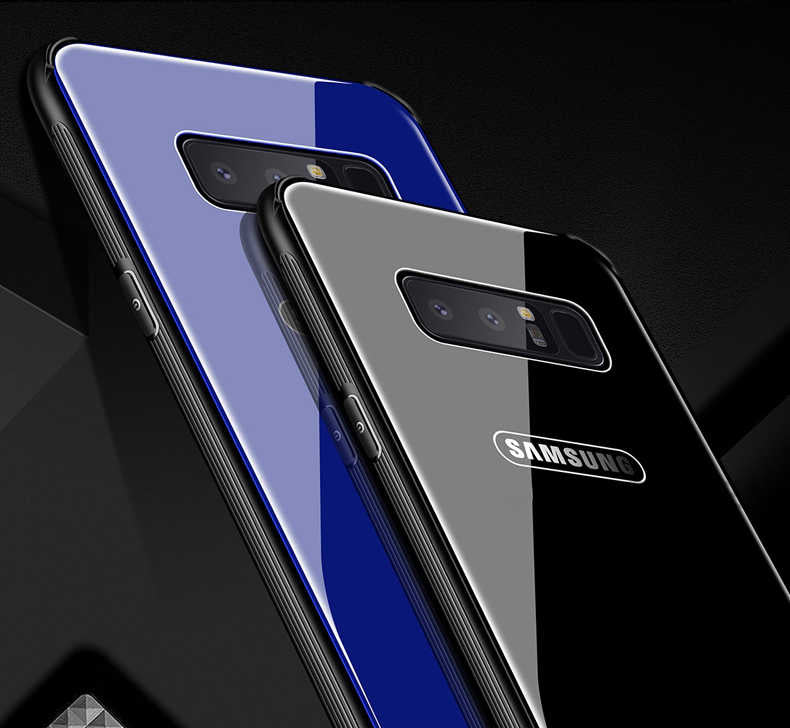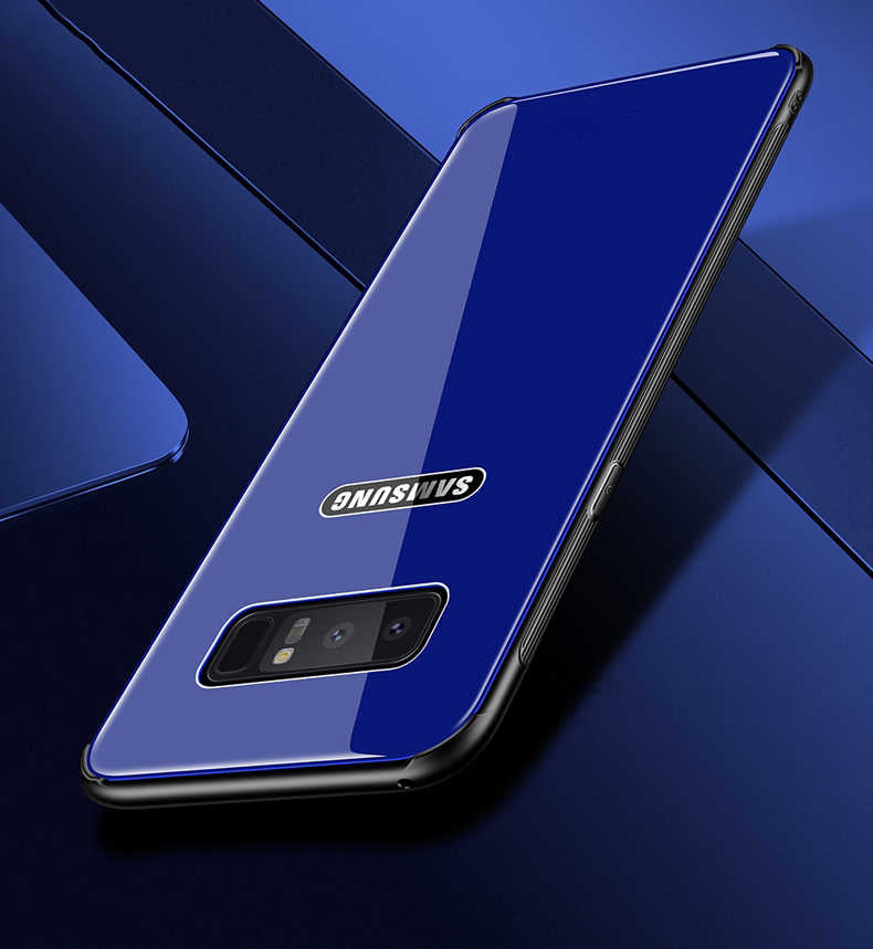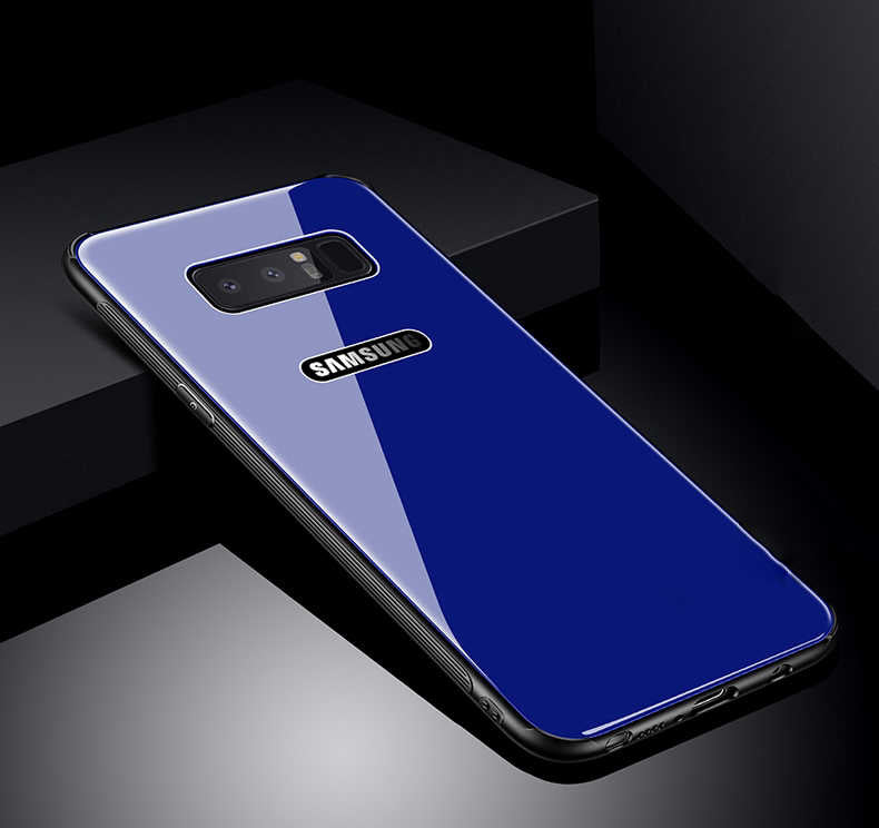 Galaxy Note 8 Kılıf Zore Düz Renkli Ebruli Cam Kapak Mavi