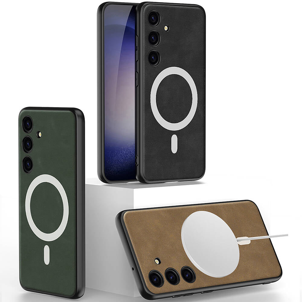 Galaxy S24 Kılıf Magsafe Şarj Özellikli Deri Tasarımlı Zore Kıpta Nubuk Kapak Kahverengi