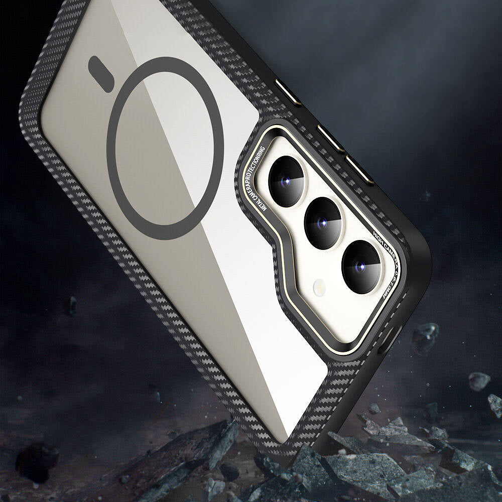 Galaxy S24 Kılıf Magsafe Şarj Özellikli Sert PC Karbon Fiber Kenar Tasarımlı Zore Libero Kapak Siyah