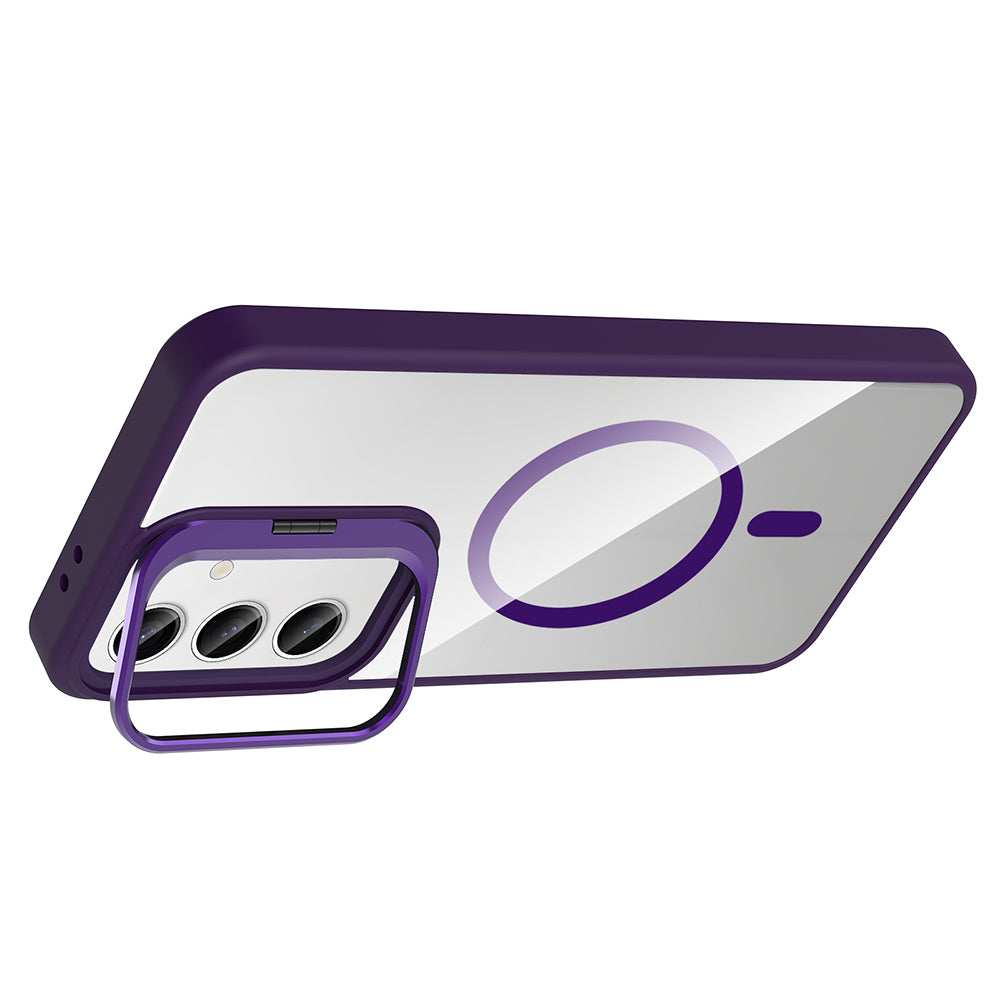 Galaxy S24 Kılıf Standlı ve Kamera Lens Hediyeli M-Safe Şarj Özellikli Zore Etro Kapak Derin Mor