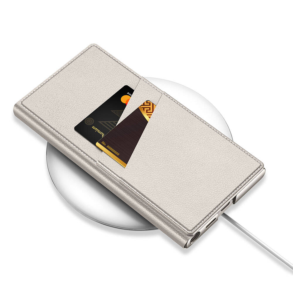 Galaxy S24 Ultra Kılıf Kamera Korumalı Suni Deri Tasarım Zore Droga Standlı Kartlıklı Kapaklı Kılıf