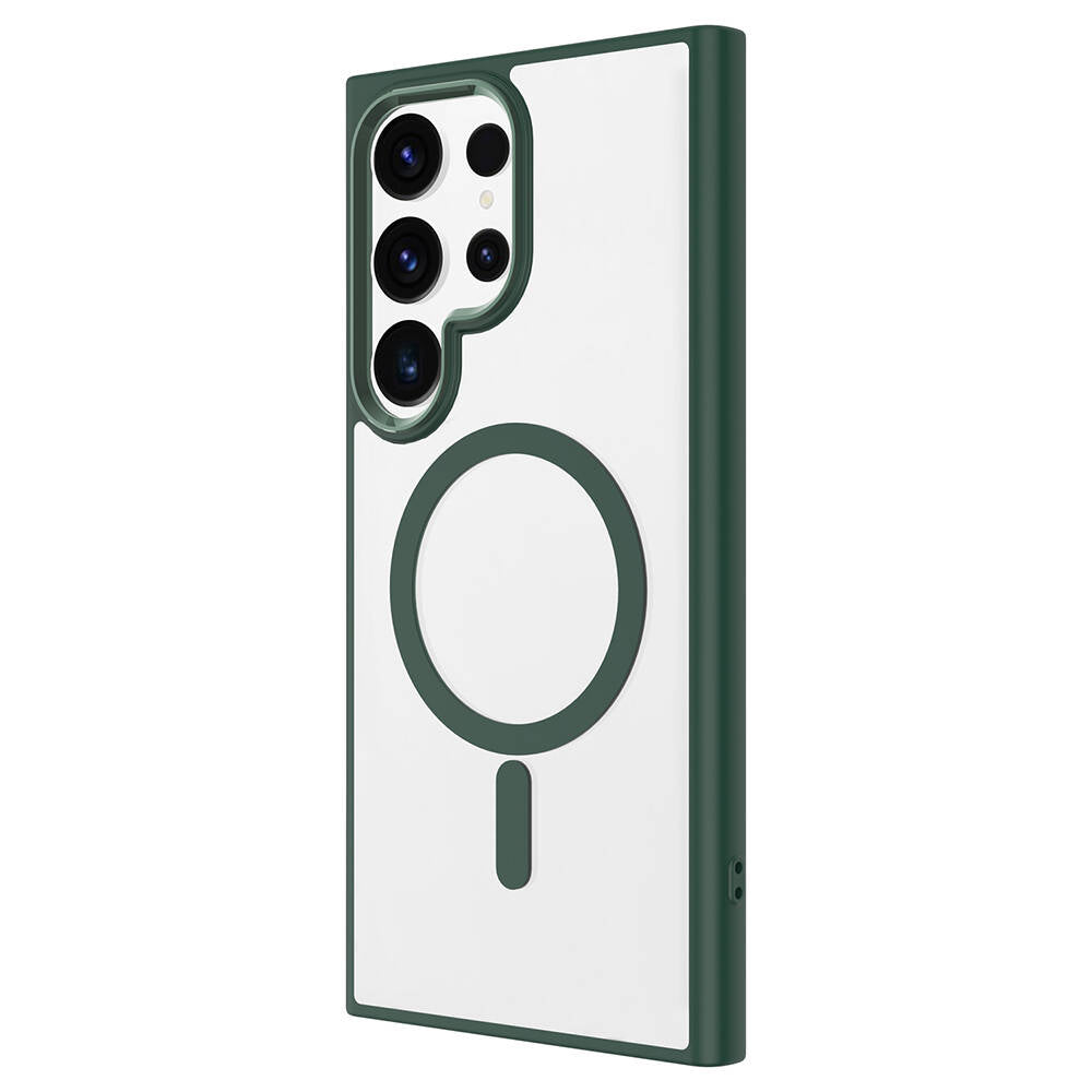 Galaxy S24 Ultra Kılıf Magsafe Şarj Özellikli Zore Krom Magsafe Silikon Kapak Koyu Yeşil