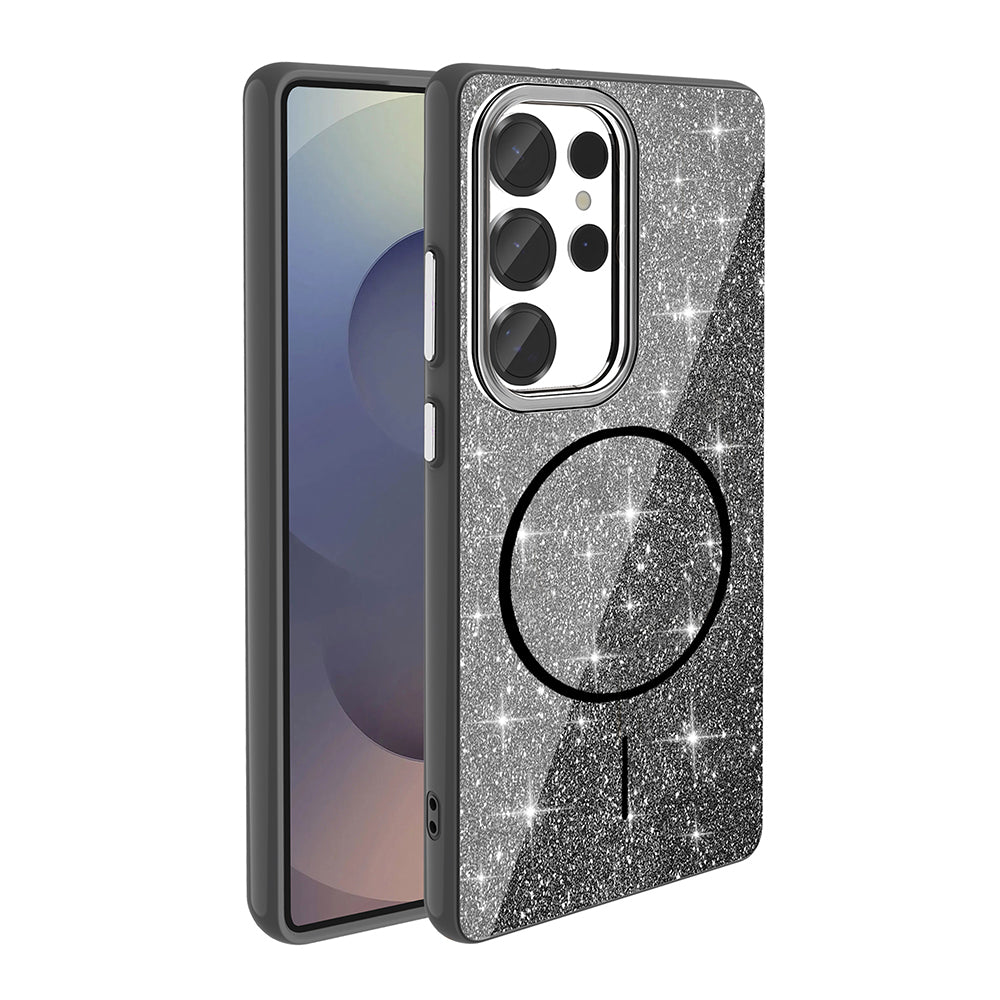 Galaxy S25 Ultra Kılıf Magsafe Şarj Özellikli Parlayan Simli Zore Okso Kapak Derin Mor
