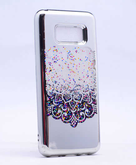 Galaxy S8 Kılıf Zore Lazer Çiçekli Sıvılı Silikon Gümüş