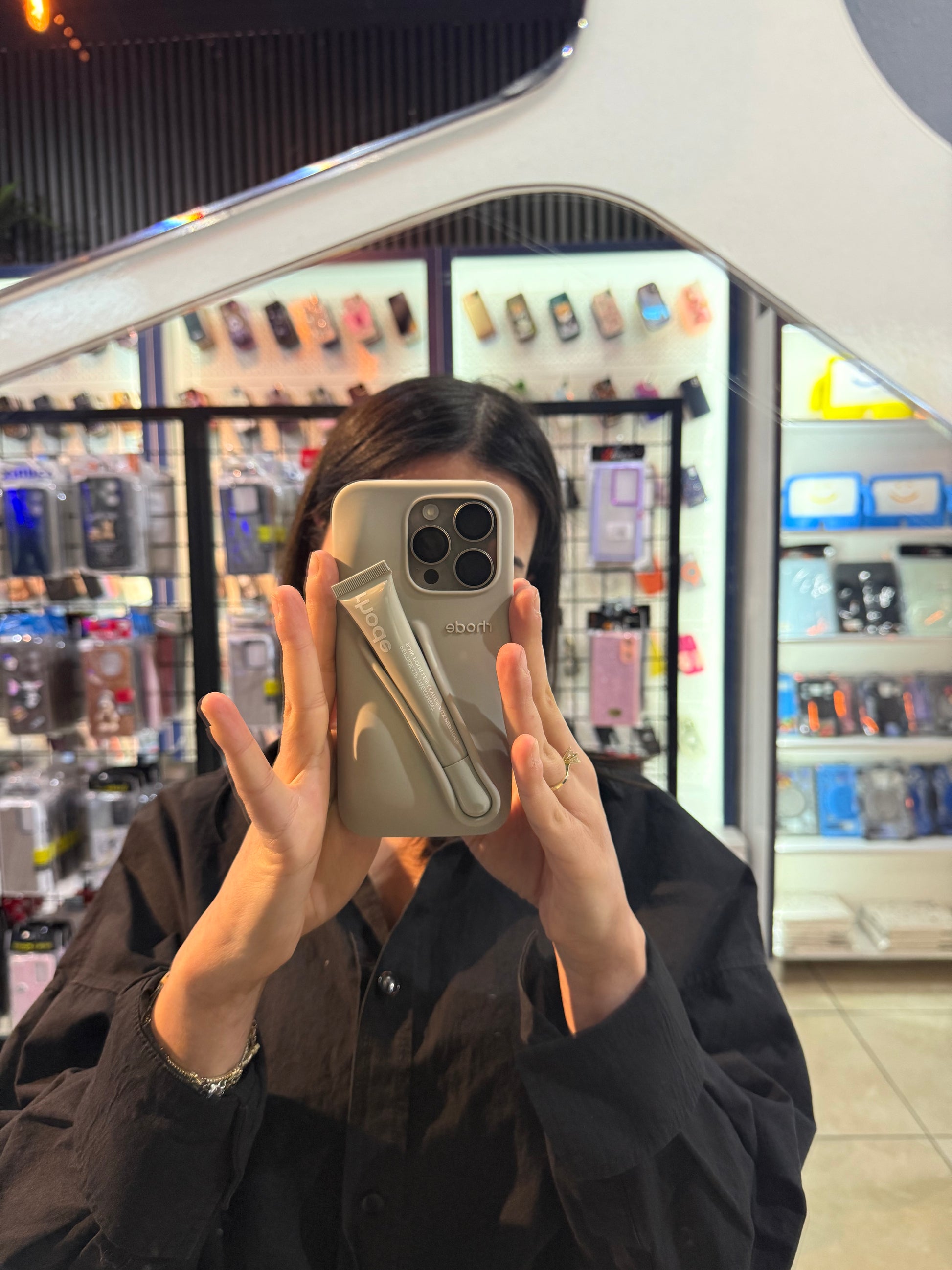 Güzellik ve fonksiyonellik bir arada! Rhode tasarımı bu şık kılıf, hem telefonunuzu korur hem de makyaj çantanızı hafifletir.