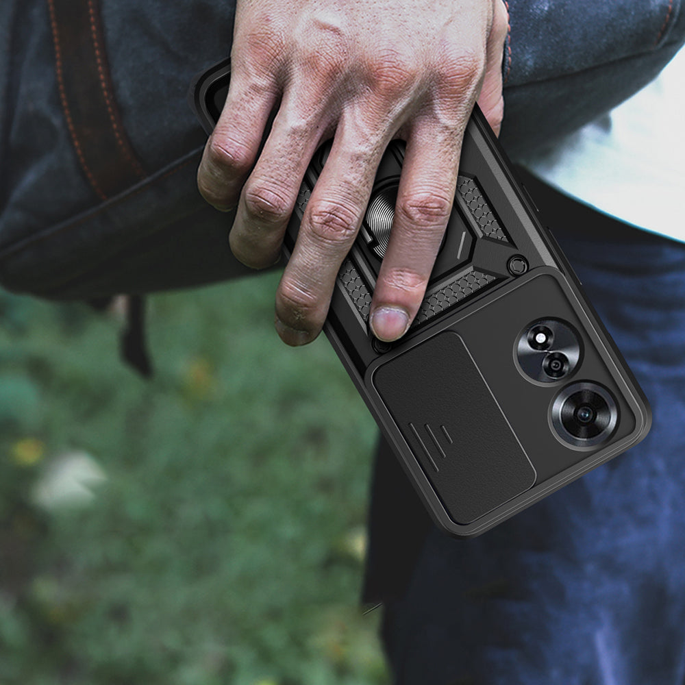 Oppo A60 Kılıf Magnetik Standlı Kamera Korumalı Zore Sürgülü Vega Kapak Mavi
