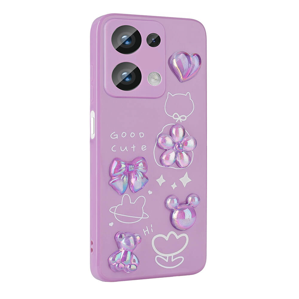 Xiaomi Poco M6 Pro 4G Kılıf Kabartma Figürlü Parlak Zore Toys Silikon Kapak Mor
