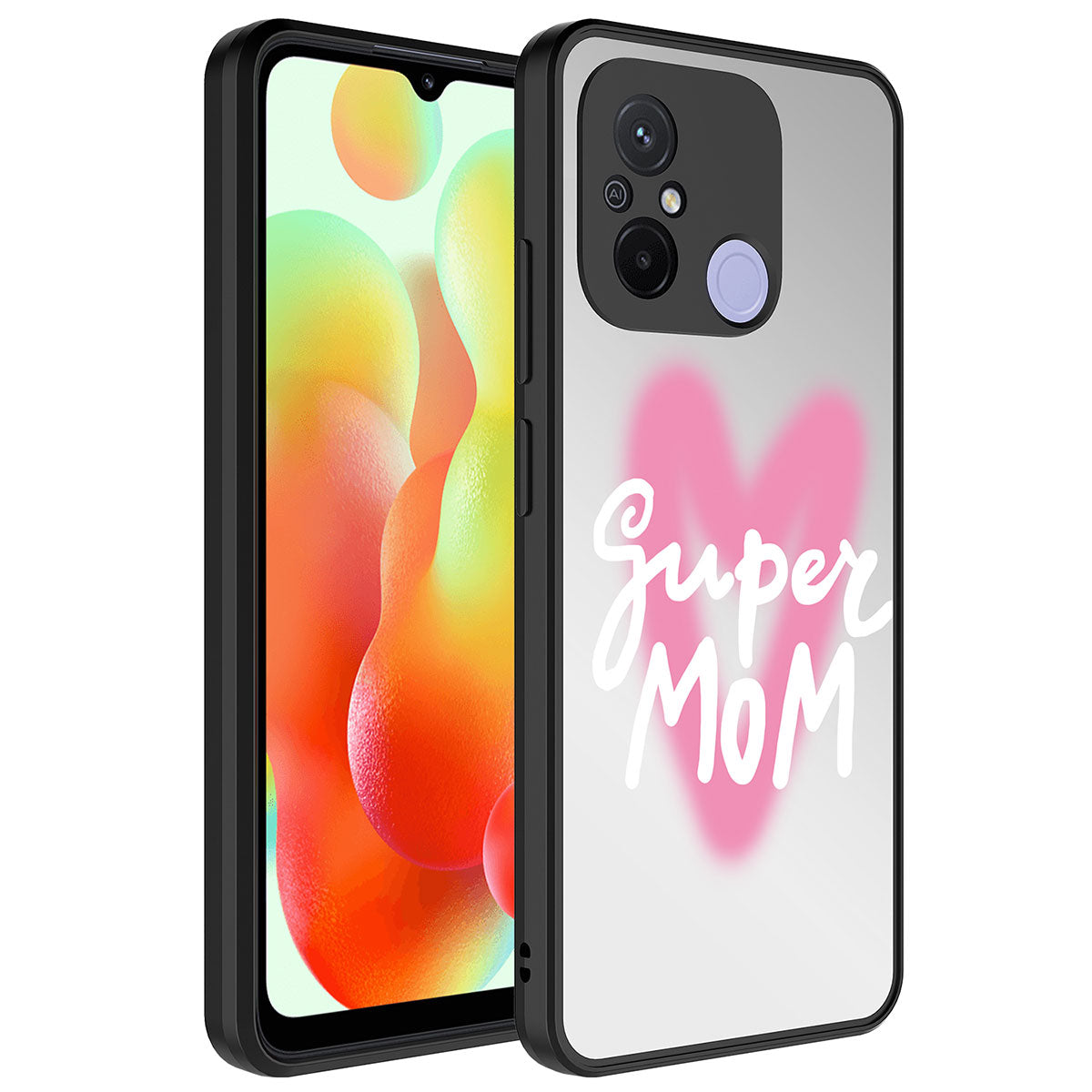 Xiaomi Redmi 12C Kılıf Aynalı Desenli Kamera Korumalı Parlak Zore Mirror Kapak Süper Anne