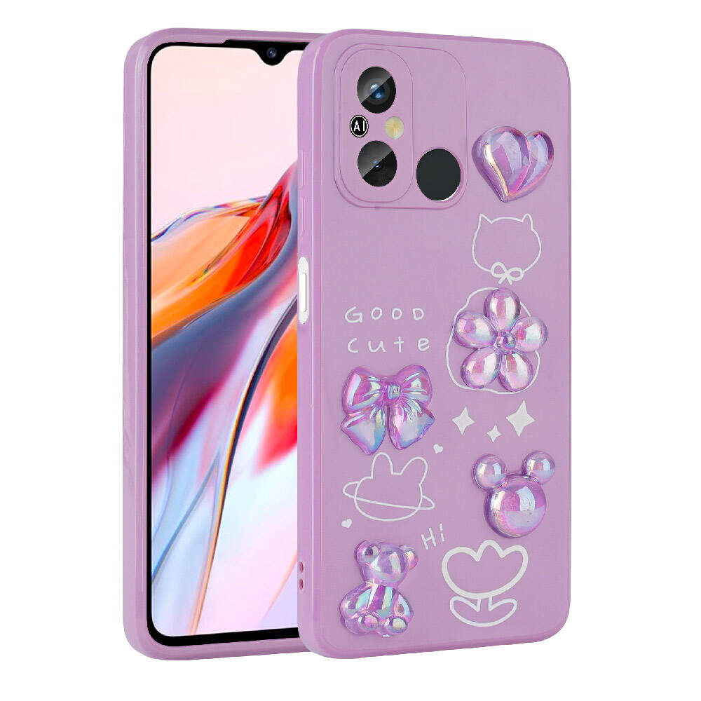Xiaomi Redmi 12C Kılıf Kabartma Figürlü Parlak Zore Toys Silikon Kapak Mor