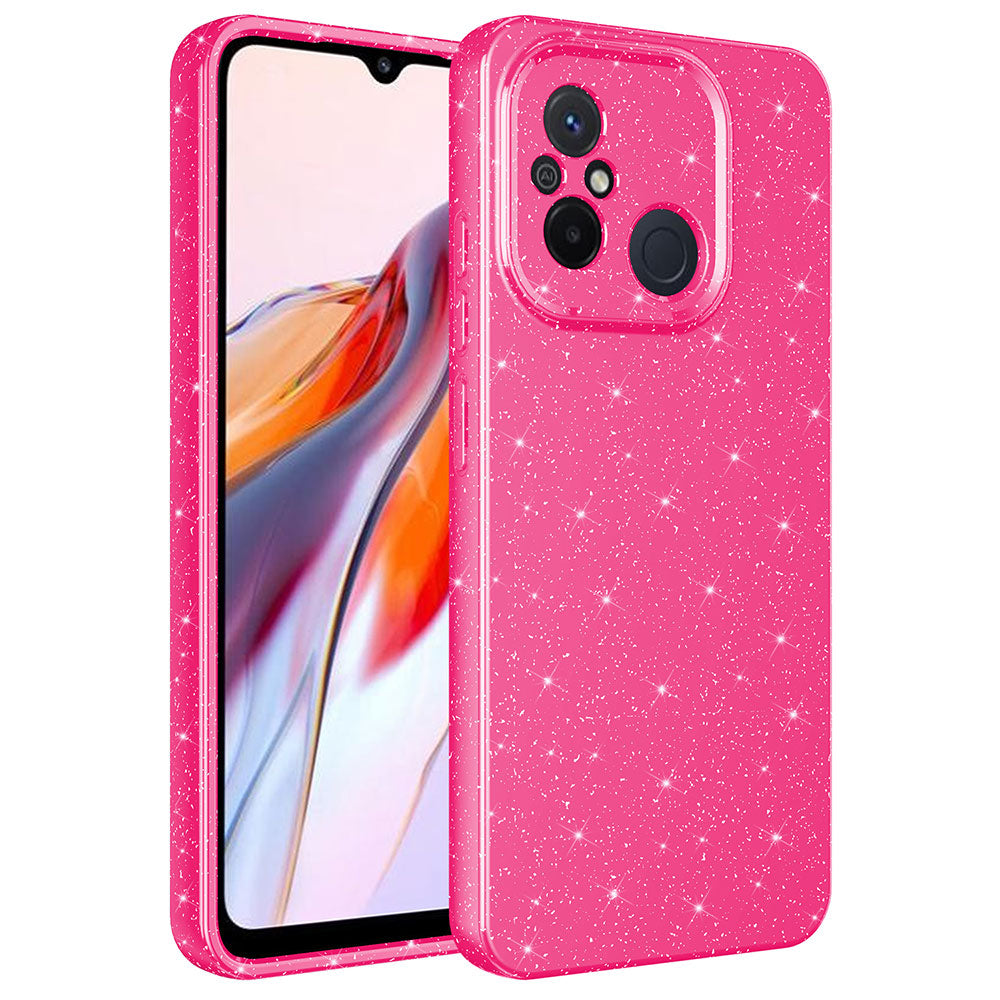 Xiaomi Redmi 12C Kılıf Kamera Korumalı Simli Lüks Zore Koton Kapak Pembe Koyu