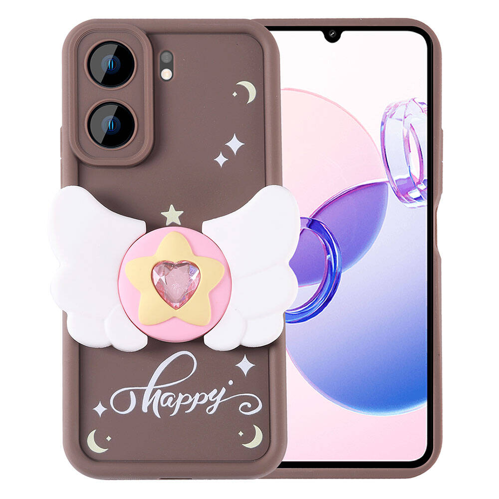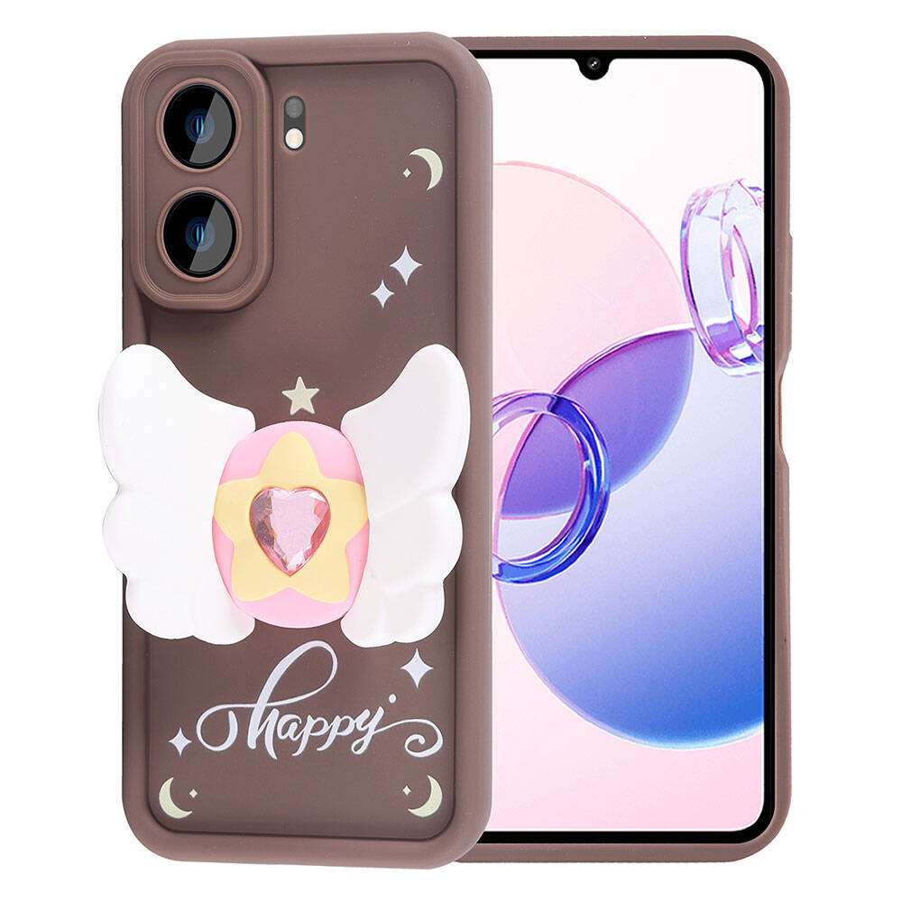Xiaomi Redmi 13C Kılıf Kamera Korumalı Figür Tasarımlı Zore Kapya Kapak Koyu Kahve