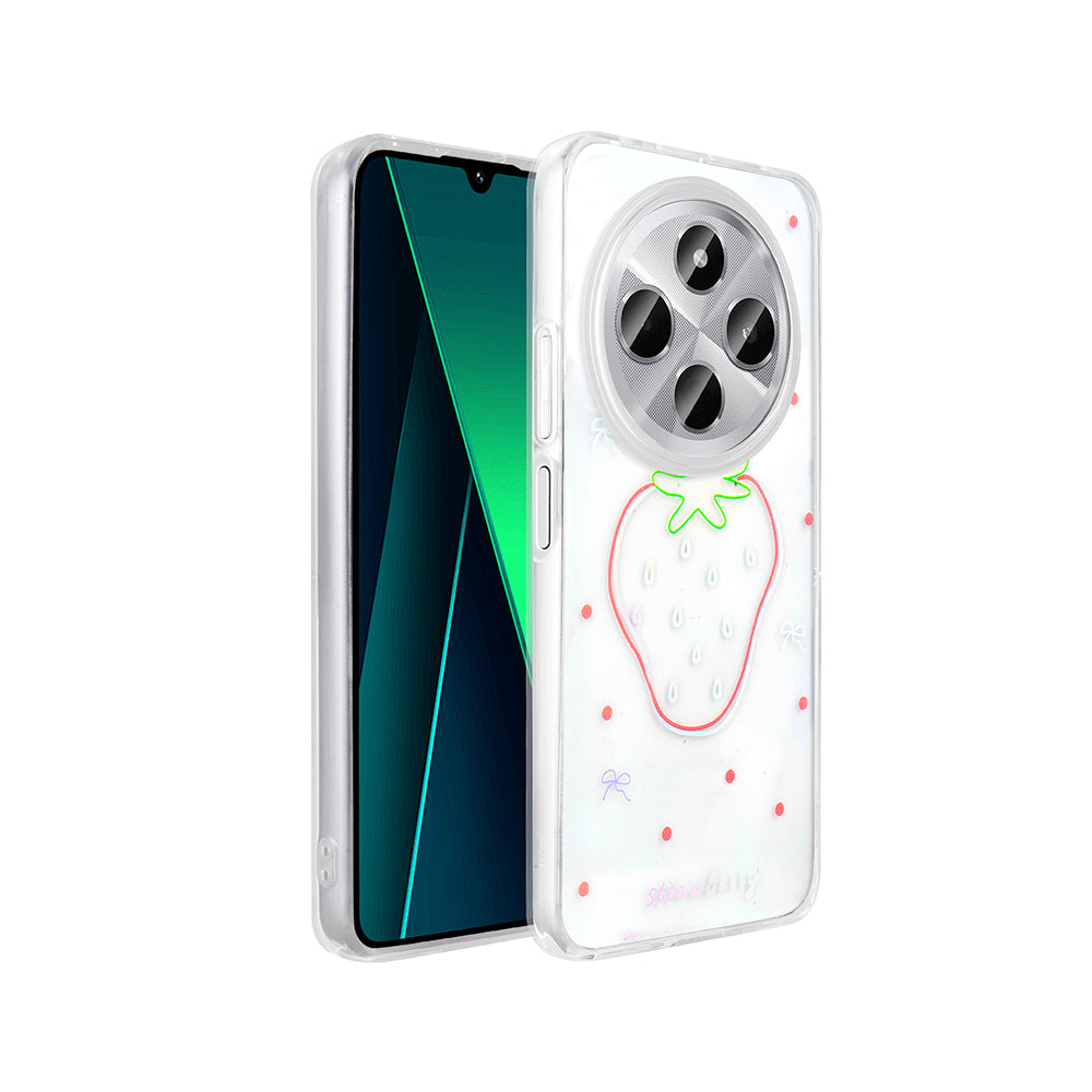 Xiaomi Redmi 14C 4G Kılıf Şeffaf Figürlü Zore Folk Sert Kapak Çilek