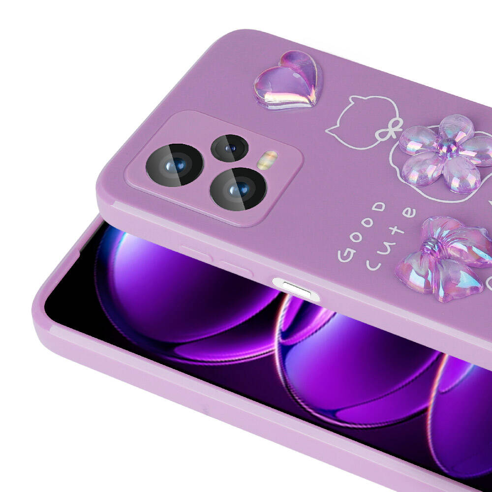 Xiaomi Redmi Note 12 4G Kılıf Kabartma Figürlü Parlak Zore Toys Silikon Kapak Mor