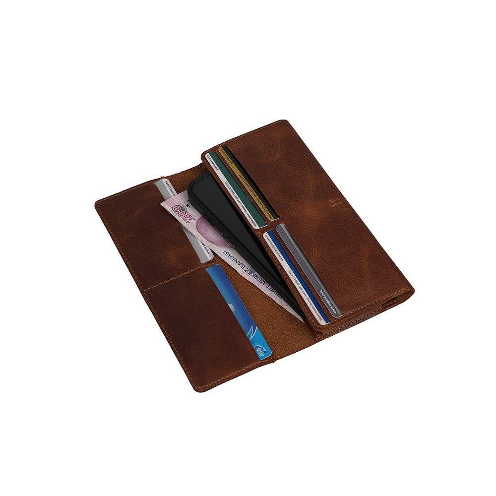 Zore Hakiki Deri Universal 10 Kart Hazneli Mıknatıslı Telefon Bölmeli Cüzdan Kahverengi